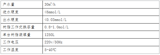 進(jìn)水水質(zhì)硬度不大于6mmol/L時出水硬度可達(dá)0.03mmol/L.