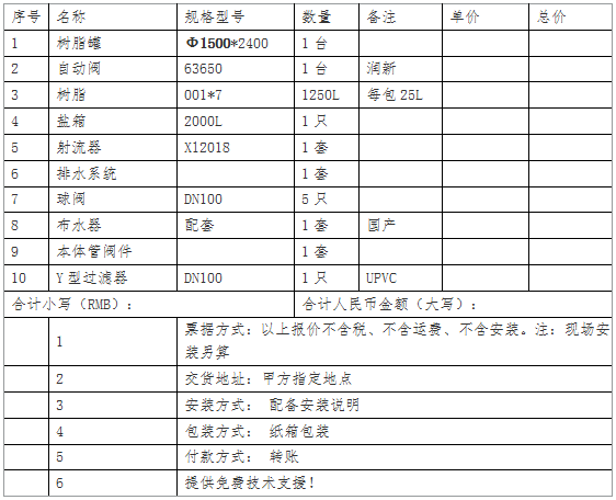 本系統(tǒng)為軟水器進(jìn)口至全自動軟水器出口的所有工藝及所需設(shè)備的制作,安裝,調(diào)式,不包括土建,預(yù)埋電線管,設(shè)備基礎(chǔ)預(yù)埋鋼板等。